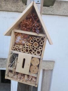 Im kommenden SJ wird es hier eine Umstrukturierung geben. Es werden die Beete klassenweise verteilt, aber gezielt bepflanzt. Dem Standort und dem Nutzen angepasst, wird es thematisch einheitliche Beete geben. Durch eine Spende von Eltern gehört seit letztem Jahr auch ein tolles Insektenhotel zum Projekt.