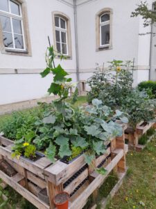 Bereits im Jahr 2018 entstanden die ersten Beete vor dem Hauptgebäude der Oberschule Kötitz. Ziel war es eine eher ungenutzte Fläche nutzbar zu machen und die Schüler für das Thema Pflanzen, Ernährung und Nachhaltigkeit zu sensibilisieren. Im Jahr 2022/23 wurden dann durch Spenden mit Paletten Hochbeete für jede Klasse gebaut. Die SuS bauten die Beete in kleinen Gruppen, mit Erde befüllt und bepflanzt. Jede Klasse hatte die Aufgabe ihr eigenes Beet zu pflegen und zu gießen.